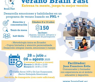 El programa educativo innovador Brain Fast, se enfoca en tres ejes: Educación, Deporte y Comunicación; dentro de los cuales utiliza la aplicación de la Programación Neurolingüística (PNL) y los beneficios de la práctica del Tenis de mesa para mejorar los procesos cognitivos de las personas, con la finalidad de potencializar sus habilidades blandas (soft skills) y obtener resultados en lo académico, deportivo y comunicacional (tanto a nivel de la comunicación interpersonal como de la organizacional).